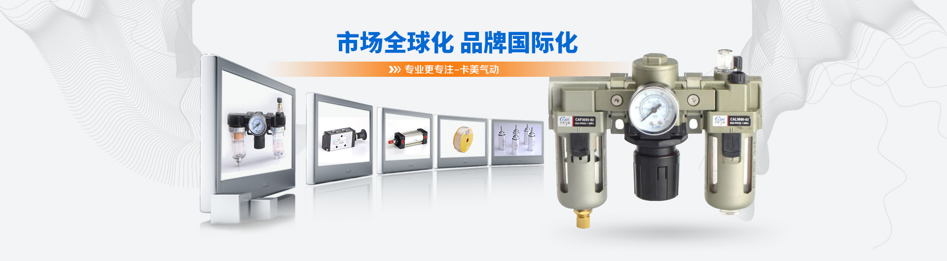 卡美氣動有限公司是一家具有現(xiàn)代化生產(chǎn)規(guī)模的專業(yè)開發(fā)、制造氣動元件的公司。主導(dǎo)產(chǎn)品有:氣源處理系列、標準缸、迷你缸、超薄缸、QGB(大直徑)氣缸、雙軸缸、電磁閥、氣動閥、油壓缸、快速接頭、PU氣管等產(chǎn)品。